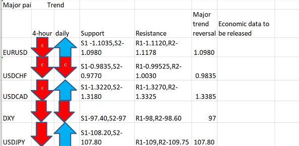 Major Pair levels and bias summary