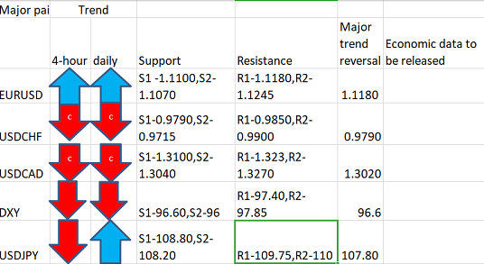 Major Pair levels and bias summary