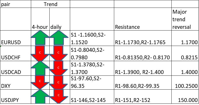 Major Pair levels and bias summary
