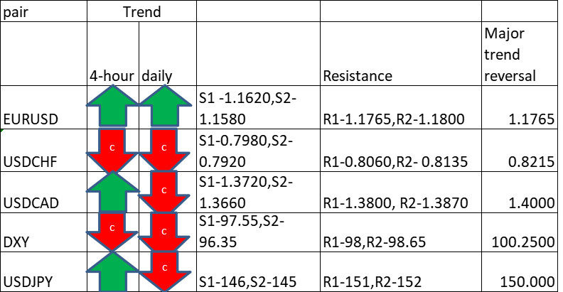 Major Pair levels and bias summary