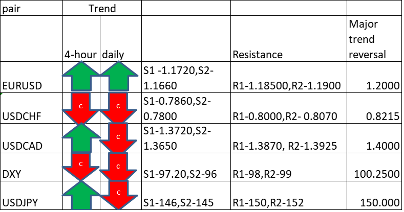 Major Pair levels and bias summary