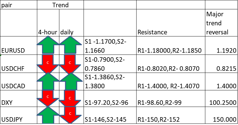 Major Pair levels and bias summary