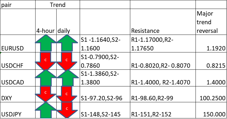 Major Pair levels and bias summary
