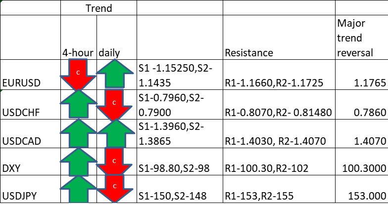 Major Pair levels and bias summary