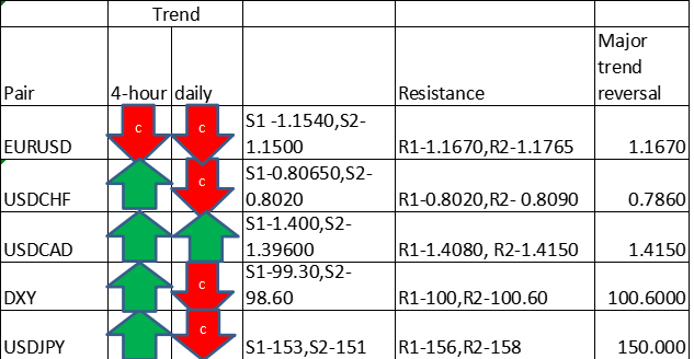 Major Pair levels and bias summary