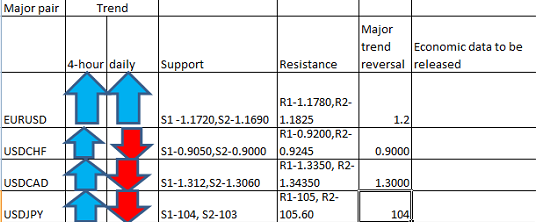 Major Pair levels and bias ummary