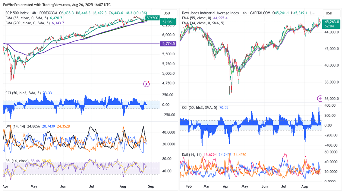 The pair holds above short-term (34, 55 EMA) and long-term (200 EMA) in a 4-hour chart.