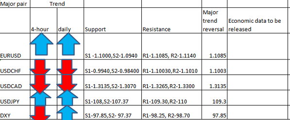 Major pair levels and bias summary