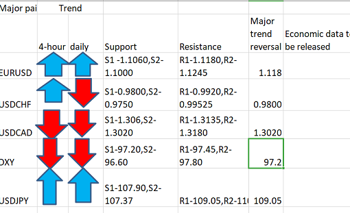 Major pair levels and bias summary