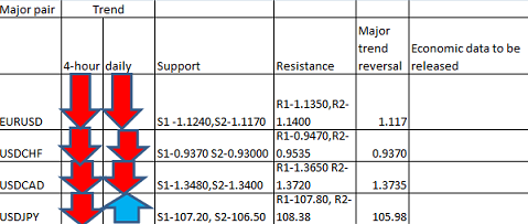 Major pair levels and bias summary