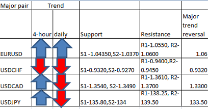 Major pair levels and bias summary