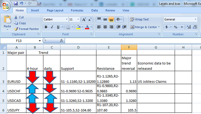 FxWirePro- Major Pair levels and bias summary