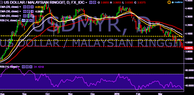 We prefer to take short position in USD/MYR around 3.9505, stop loss 4.0086 and target 3.9136 marks.