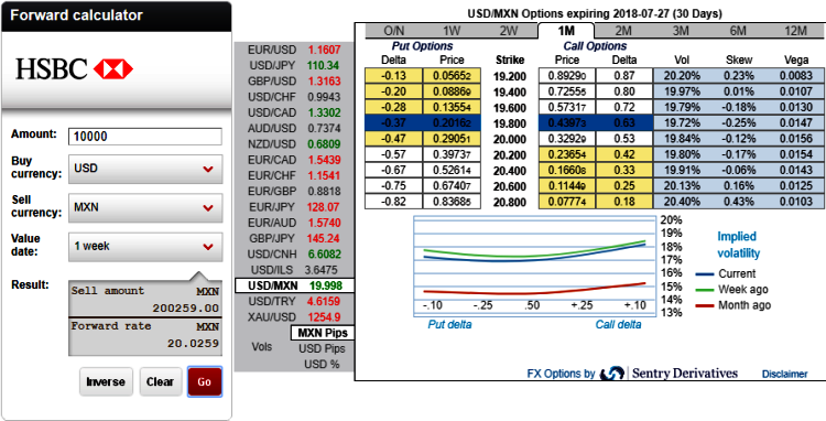 At the current market juncture, USDMXN 1M FVAs mid with the start date set to Q2 end are priced more than 8 vols below the January cycle high and come at a modest 1.3X ATM vols implying a good value in owning election vol to hedge the residual election risk. With overnight pricing commanding a punchy bid/offer, the equivalent pre-/post-calendar spreads (selling pre-event options and buying post-event options in order to isolate and capture sharp spot moves/realized volatility) are worth considering.
