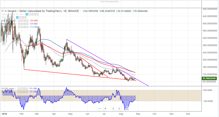 XMR declined continuously from the minor top of $151.95 till $87 almost more than $60. The pair has recovered after showing a minor decline below trend line.