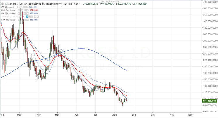 XMR declined continuously from the minor top of $151.95 till $87 almost more than $60. The pair has recovered after showing a minor decline below trendline.