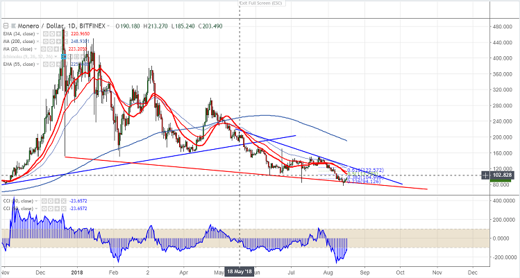 XMR declined continuously from the minor top of $151.95 till $87 almost more than $60. The pair took support near major trend line and showed a minor jump from that level.