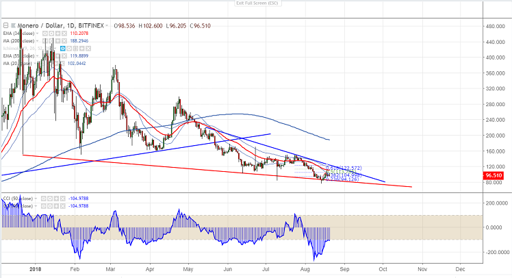 XMR declined continuously from the minor top of $151.95 till $87 almost more than $60. The pair has recovered after showing a minor decline below trendline.