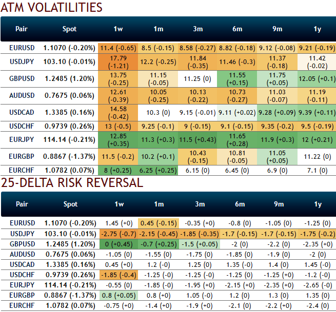 While USDJPY pin risk is seen in options expiring on this Friday at strikes 100.95, most importantly, as the OTC VIX USDJPY is the pair to have highest volumes.