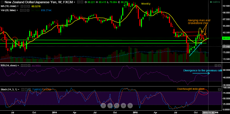More importantly, the formation of Gravestone doji pattern candle in between at 80.074 levels (which is above mentioned support zone) now signifies weakness in previous rallies, looks like bears are interested in taking over the control.