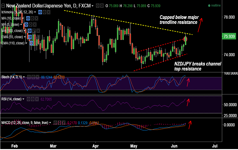 - Technically 76.30 is major trendline resistance for the pair, further upside can be seen only on breaks above.