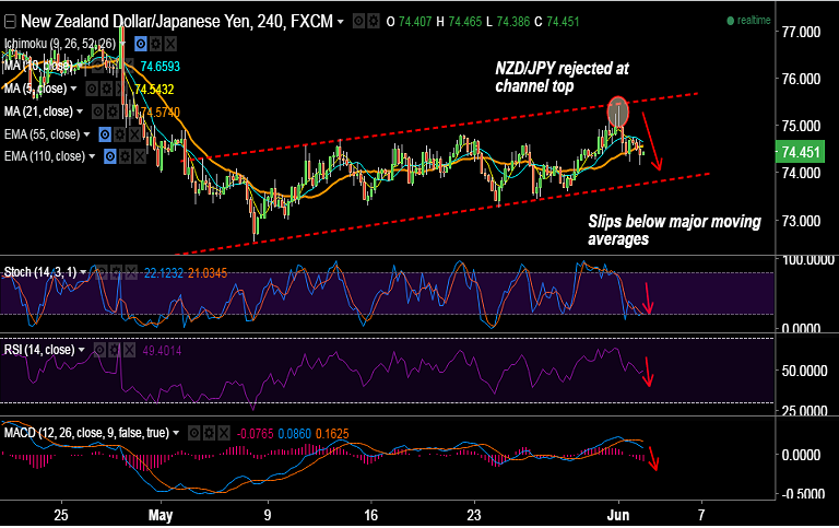FxWirePro: NZD/JPY capped below 50-DMA, bias lower