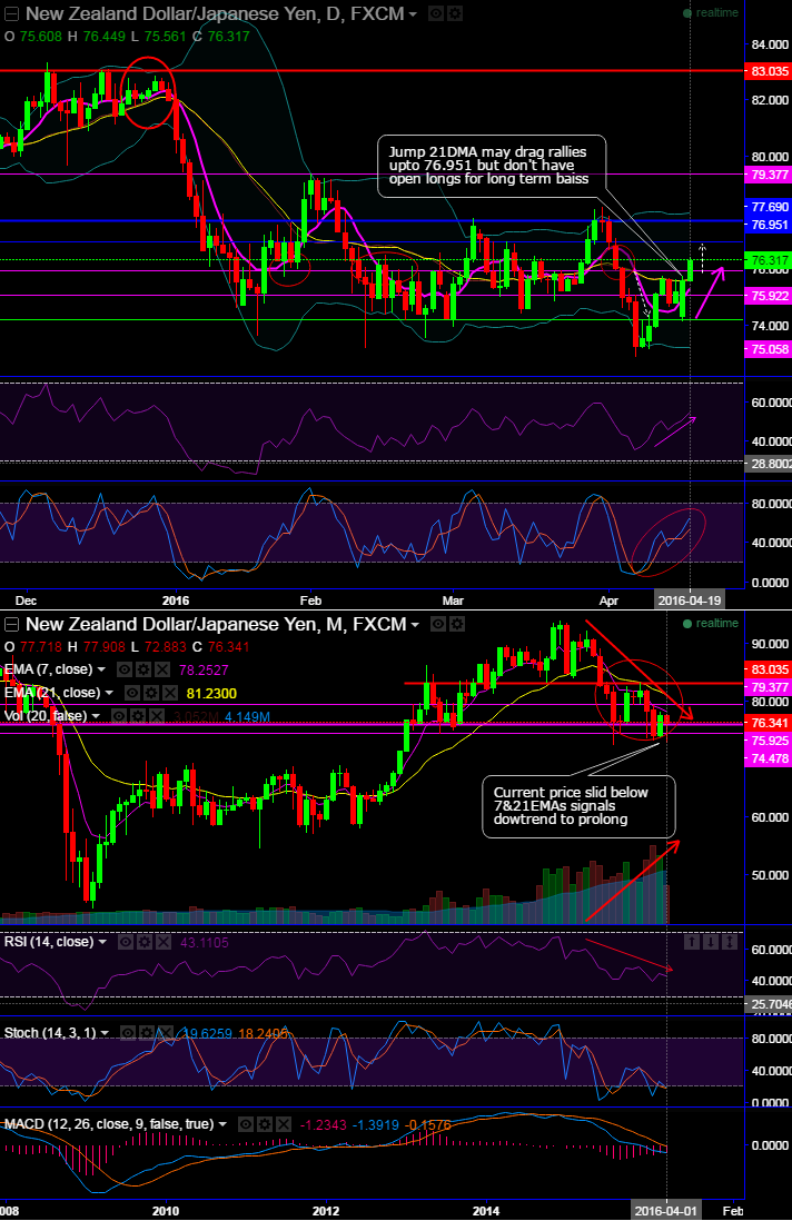 Jump 21DMA may drag rallies upto 76.951 but don't have open longs for long term basis.