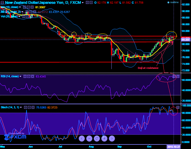 More importantly, the formation of doji pattern candle at 81.923 levels signifies weakness in previous rallies, looks like bulls have exhausted and given up.