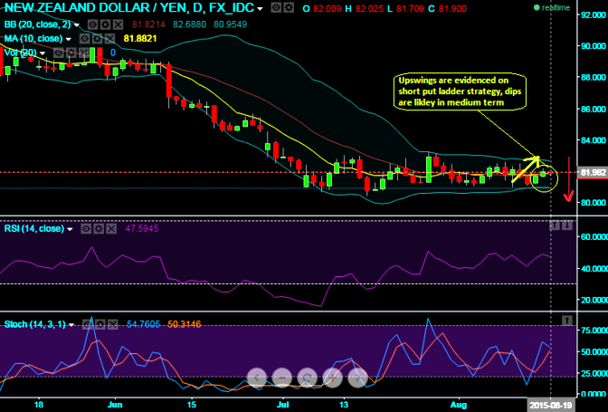 The pair rallied from 81.108 to 82.19, even if it shows further upside potential we would still be safe but medium term it has to drop back. Well.., the purpose of employing shorts of (1.5%) in the money puts are serving, (see daily charts), this was recommended on 17th of this month and the chances of these shorts expiring in the money is reducing. So these shorts with reasonably shorter expiry would certainly ensure handsome yields earned on these shorts as the pair continued to rally and halting at one juncture and then our short sides would start functioning.
