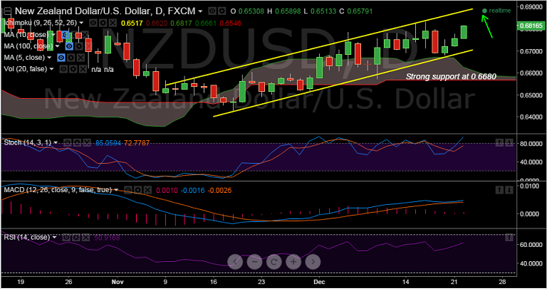 Recommendation: Book partial profits and hold for further gains. Raise stops loss to 0.6755, TP: 0.6825/30
