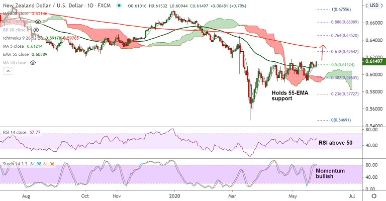 Major Support Levels: 0.6121 (5-DMA), 0.6088 (55-EMA), 0.6068 (21-EMA)