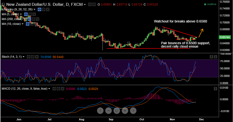 - The pair is currently trading at 0.6578, with immediate resistance at 0.6580 (Trendline, Nov 23 high) and support at 0.6550 (Session low Nov 25, 55 & 100 DMAs)