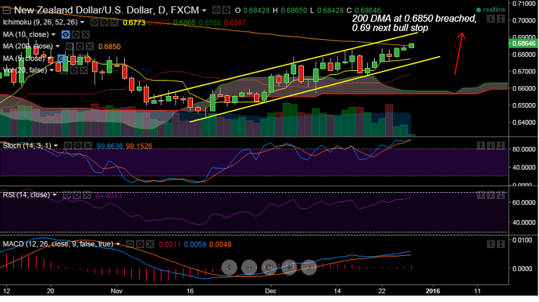 - 0.6850 200-DMA resistance now flips to support, then 0.6834 5-DMA is the next support. Little chart resistance till 0.6887 (Oct 16 high) and 0.6897 (Oct 15 high)