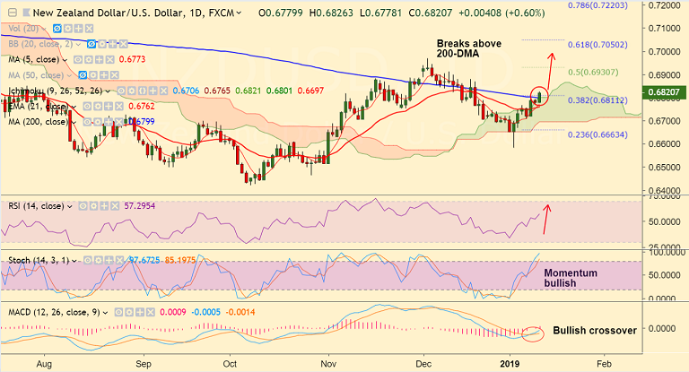 - NZD/USD has shown a break above 200-DMA, further upside likely on bullish momentum.