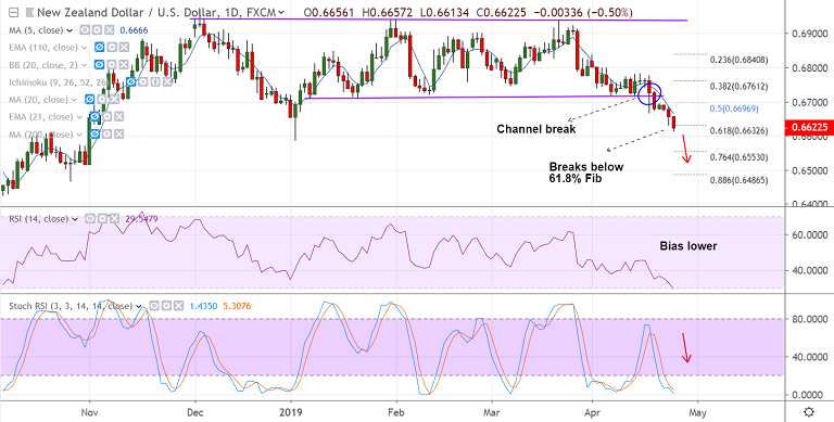- The pair has hit 16-week lows at 0.6622, bias still bearish.
