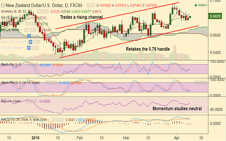 - Pair currently trades around day's highs at 0.6820, next immediate resistance is seen at 0.6830 (Apr 4th highs).
