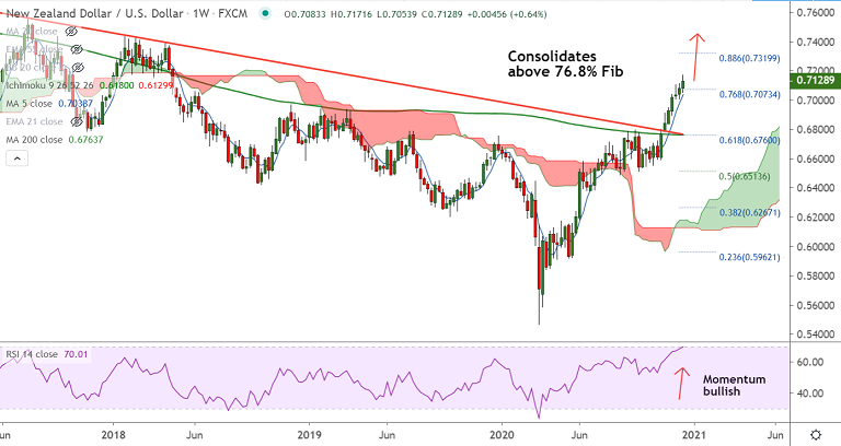 The major is extending a corrective slide from multi-year highs at 0.7171 hit on Thursday's trade.
