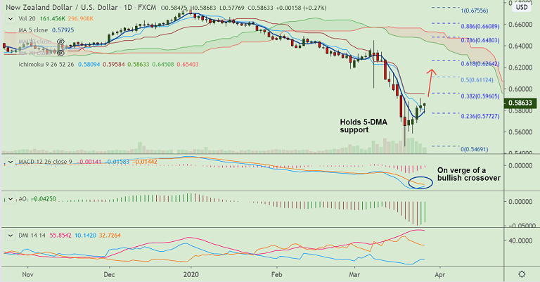 Support levels - 0.5797 (5-DMA), 0.5772 (23.6% Fib)