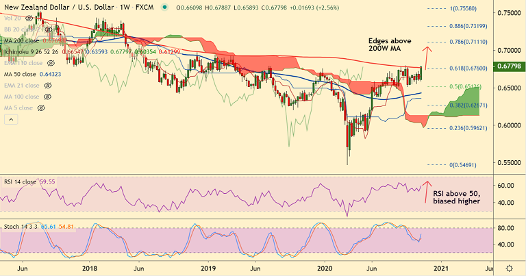 The pair is extending gains for the 5th straight session and price action has broken above 200W MA raising scope for further upside.