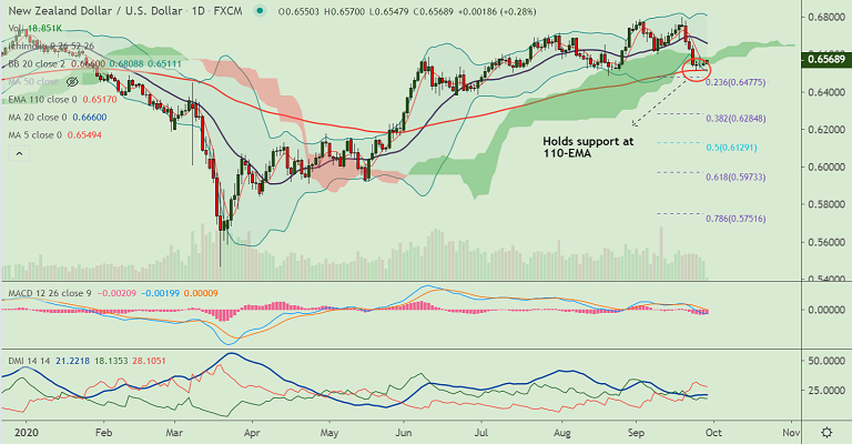 Support levels - 0.6517 (110-EMA), 0.6390 (200-DMA)