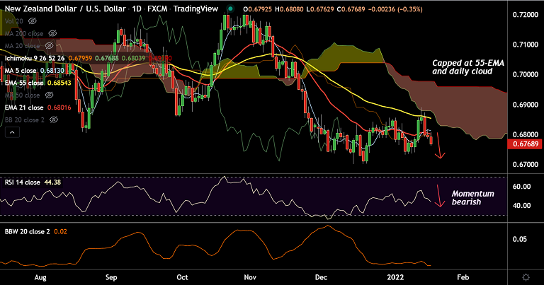 - NZD/USD price action rejected at 55-EMA and daily cloud