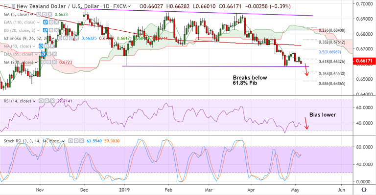 - NZD/USD extends gap-down open in the Asian session, trades 0.39% lower at 0.6617 at 0440 GMT.