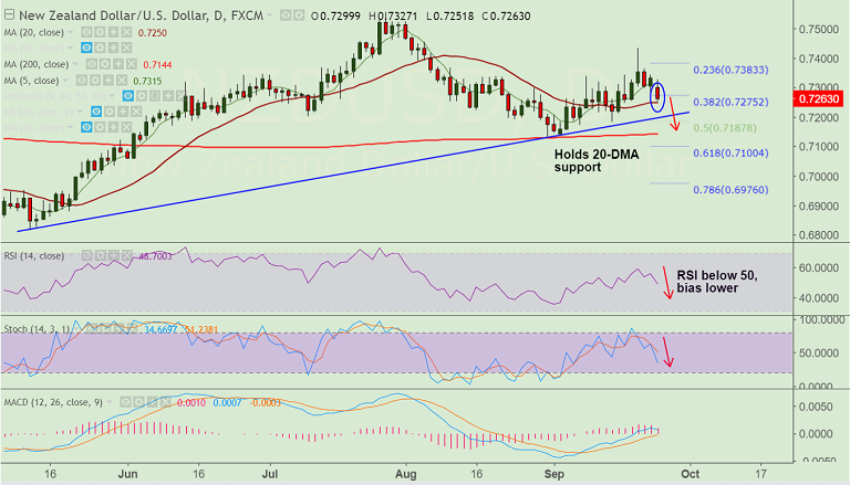 Support levels - 0.7250 (20-DMA), 0.7234 (100-DMA), 0.72 (trendline)