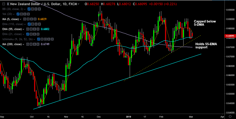 Resistance levels - 0.6819 (20-DMA), 0.6828 (5-DMA), 0.6890 (trendline)