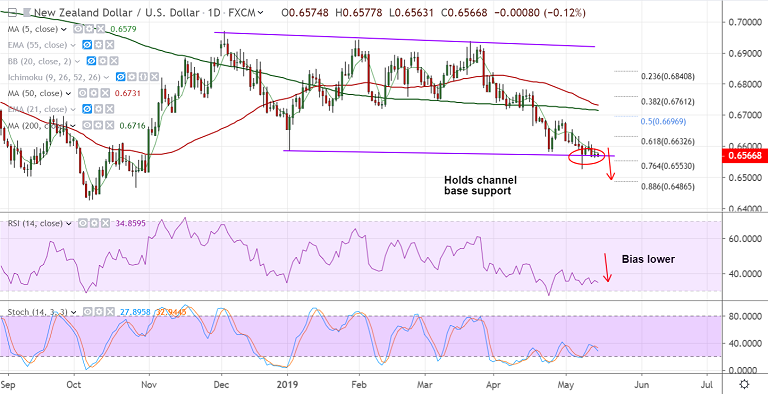 - The pair is currently holding support at channel base at 0.6865, break below will accentuate weakness.