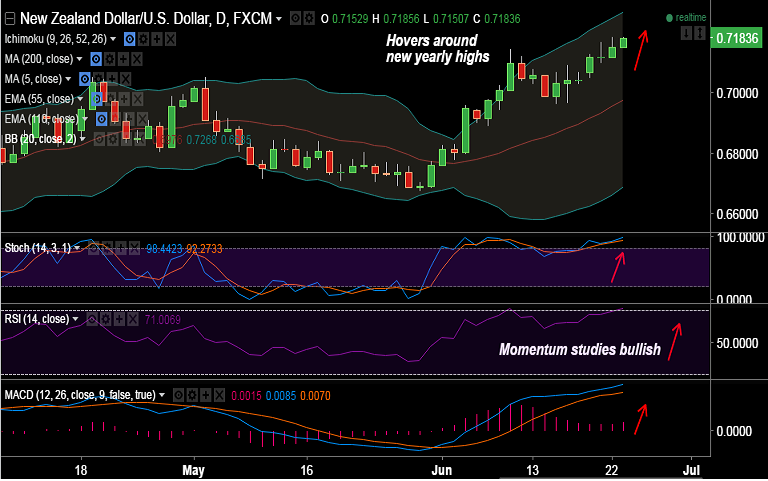 - The pair hovers around new one-year high set yesterday at 0.7188 levels.
