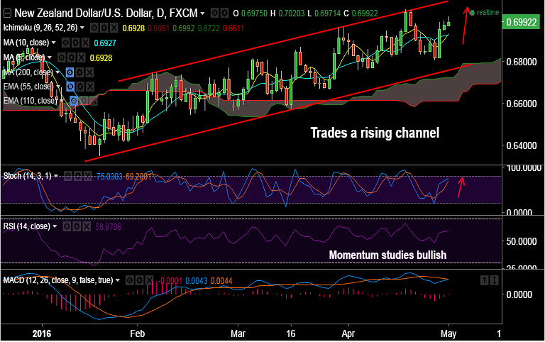 - The pair finds strong support at 0.6928 levels which is converged 5&10 DMA, weakness only on breaks below.