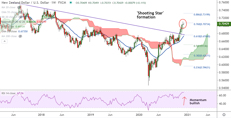 Also, the pair has formed a 'Shooting Star' pattern on the week charts in the previous week's trade, adding to the downside bias.