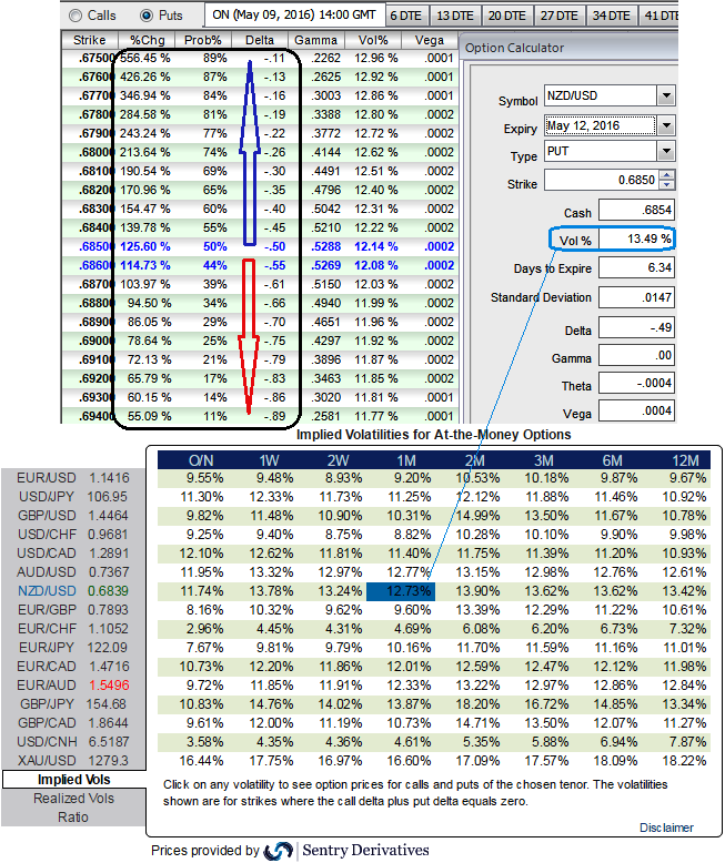 ATM IVs of 1W expiries are at 13.49% and 12.73% for 1M tenors, so it has reduced a bit, however the volatilities implied in FX option market of this pair is likely to perceive higher volatility times even after monetary policy season in both NZ and US continents which is good news for option holders.