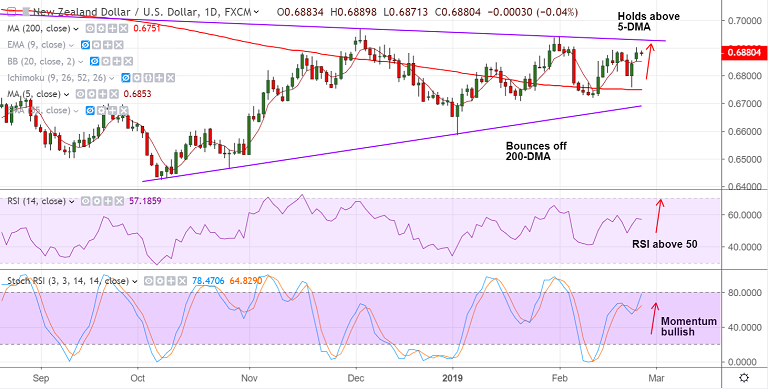 Support levels - 0.6853 (5-DMA), 0.6830 (21-EMA), 0.6751 (200-DMA)